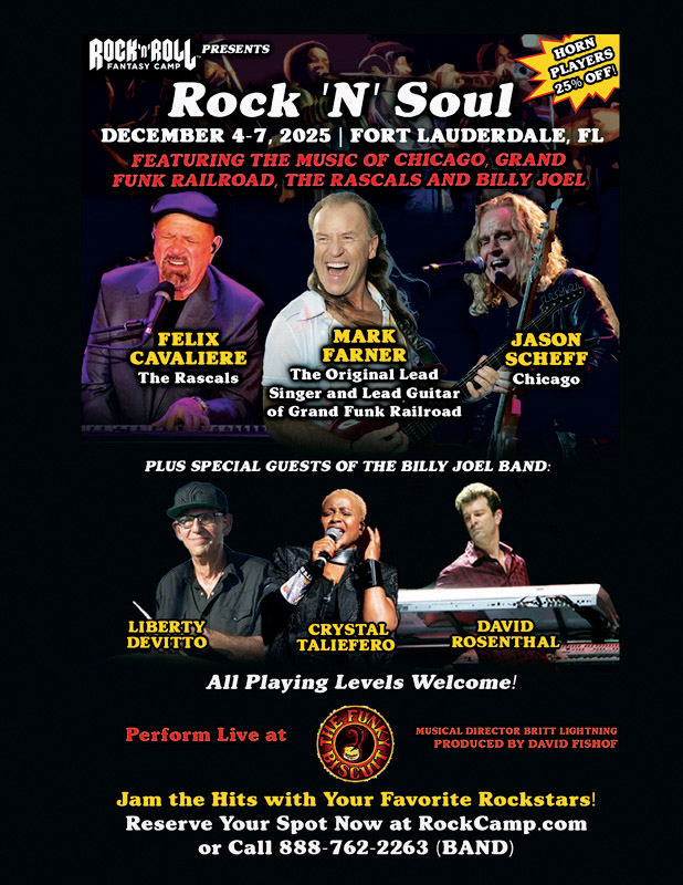 Flint, Michigan is not only noted for its automotive history (most famously General Motors), but also for being the homeplace of rock band Grand Funk Railroad, originally formed in 1969 consisting of Vocalist/Guitarist Mark Farner, Bassist Mel Schacher and Drummer Don Brewer. They became world renown with singles such as “Some Kind of Wonderful” and “We’re an American Band” and spawned six Platinum albums and seven Gold. Now, after continuing to release several hit records including many solo LP’s, his latest in 2024 entitled CLOSER TO MY HOME, Farner will be lending his extraordinary talents to the Rock ‘N’ Soul fantasy camp in Fort Lauderdale December 4th through the 7th.
