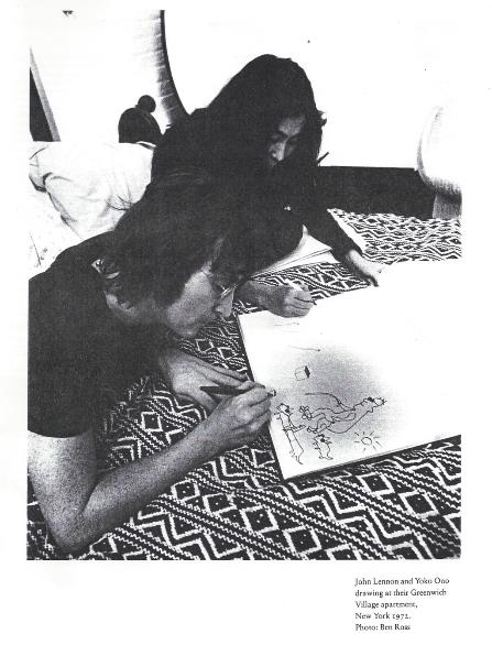 After the Beatles broke up in 1970 John began to venture around the world in pursuit of a kind of happiness that was lacking as a BEATLE. He cherished his new wife Yoko and wanted to learn all he could about the Japanese culture and art that was her background. It is important to understand that John and Yoko’s relationship was based on a mutual love for art. John met Yoko at one of her shows in New York. Yoko was part of the Fluxus movement of artists that eventually became the neo-expressionist’s period that influences much the art we see today. This art movement is often overlooked as to its importance in the evolution of modern/contemporary art in the 20th century. To Yoko’s installation of a hammer with nails next to it he asked her something to the effect of: “What if I pound the nails in”. That began a love story that John chronicled in sketch pads she had given him; and asked that he record their life together.