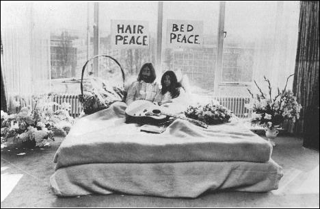 The Bed-In event is directly connected with the marriage of John Lennon and Yoko Ono in March 1969. From Paris, the couple flew to Gibraltar on 20 March, where they were married at the British consulate. The wedding itself was a performance and a public sign of their love. At the same time, However, they called into question its strict regulations by their behavior and their clothing.