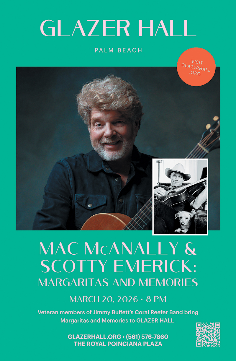 From their decades of performing with The Coral Reefer Band, 10-time CMA Musician of the Year Mac McAnally, alongside singer-songwriter Scotty Emerick, brings their Margaritas and Memories Tour to GLAZER HALL! MORE INFO >>